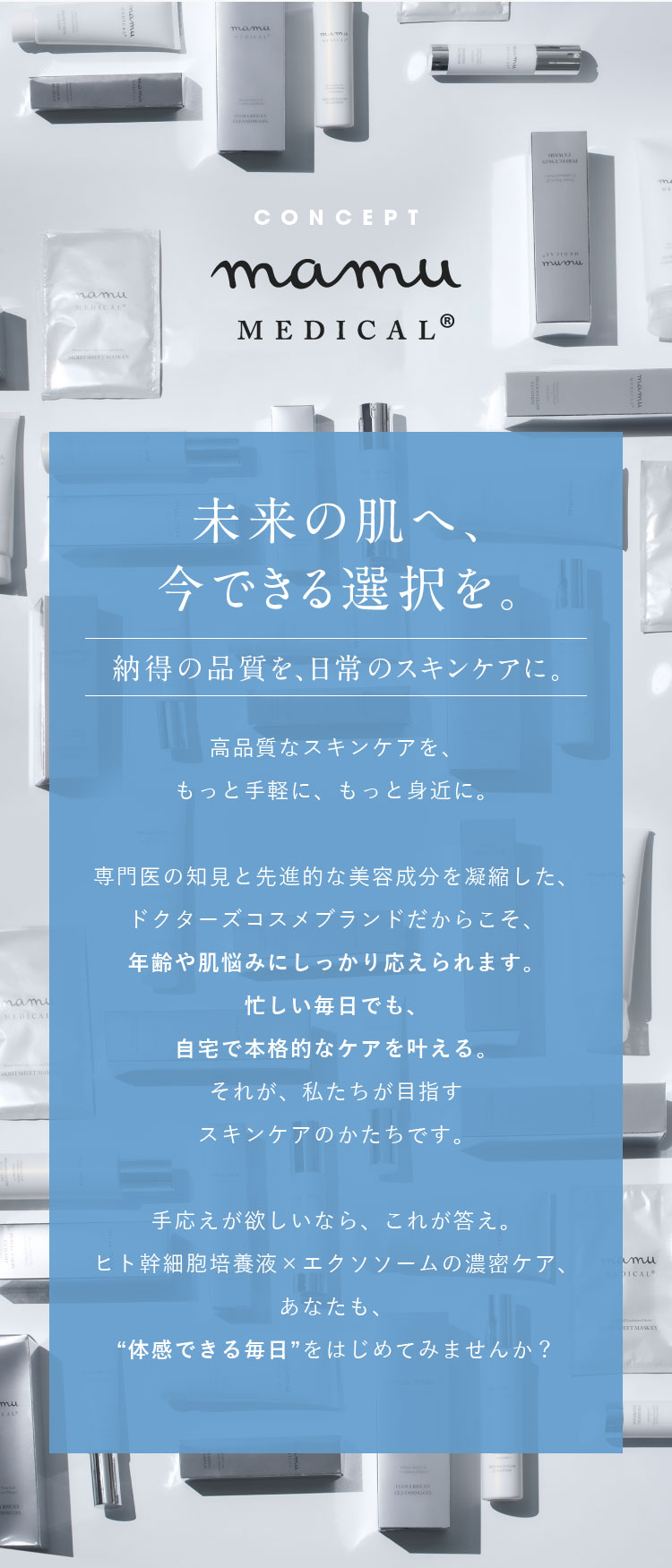 水、BG、ペンチレングリコール、ヒドロキシエチルウレア、ヒト幹細胞順化培養液、ヒト脂肪由来間葉系細胞エクソソーム、合成ヒト遺伝子組換オリゴペプチドー1、合成ヒト遺伝子組換オリゴペプチドー2、合成ヒト遺伝子組換ポリペプチド-10、合成ヒト遺伝子組換ポリペプチド-11、合成ヒト遺伝子組換ポリペプチドー9、合成ヒト遺伝子組換ポリペプチド-60、ナイアシンアミド、フラーレン、ヒアルロン酸アスコルビルプロピル、アスコルビン酸、セイヨウオオバコ種子エキス、パルミトイルトリペプチド-5、パルミトイルトリペプチド-1、パルミトイルヘキサペプチドー12、パルミトイルジペプチド-18、カプリロイルジペプチド-17、オレンジ果皮油、ラネラ/ダイズタンパク発酵物、ラバンデュラハイブリダ油、ローマカミツレ花油、ベルガモット果実油、ユーカリ葉油、ローズマリー葉油、レモン果皮油、アオモジ果実油、クスノキ葉油、グレープフルーツ果皮油、ビターオレンジ葉/枝油、マンダリンオレンジ果皮油、シロキクラゲ多糖体、セクロピアオブツシホリア種皮エキス、乳酸菌/セイヨウナシ果汁発酵液、エブリコエキス、イタリアイトスギ葉/実/茎油、PCAイソステアリン酸PEG-40水添ヒマシ油、ラウリン酸ポリグリセリル-10、キサンタンガム、クエン酸Na, EDTA-2Na、イノシトール、ヒアルロン酸Na、PG、トリ(カプリル酸/カプリン酸)グリセリル、プロパンジオール、グリセリン、水添レシチン、クエン酸、ポリソルベート80.3-0-エチルアスコルビン酸、カンフル、ハッカ葉油、カプリリルグリコール、(アクリル酸グリセリル/アクリル酸)コポリマー、PVP、酢酸トコフェロール、ラブダナム油、ポリソルベート20、ラウレス-4、規定化細胞培地9、ジ酢酸ジペプチドジアミノブチロイルベンジルアミド、パルミトイルジペプチド-5ジアミノヒドロキシ酪酸、パルミトイルジペプチド-5ジアミノブチロイルヒドロキシトレオニン、リン酸Na、レシチン、ステアリン酸、トコフェロール、1,2-ヘキサンジオール、フェノキシエタノール